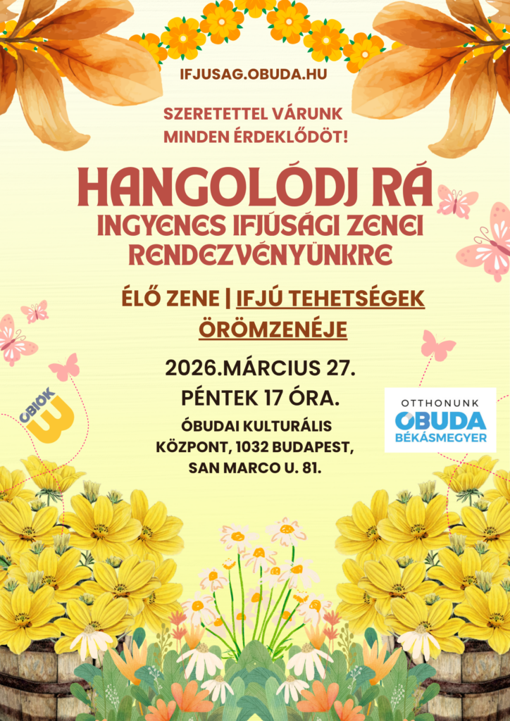 Helyszíne: Óbudai Kulturális Központ, 1032 Budapest, San Marco u. 81.